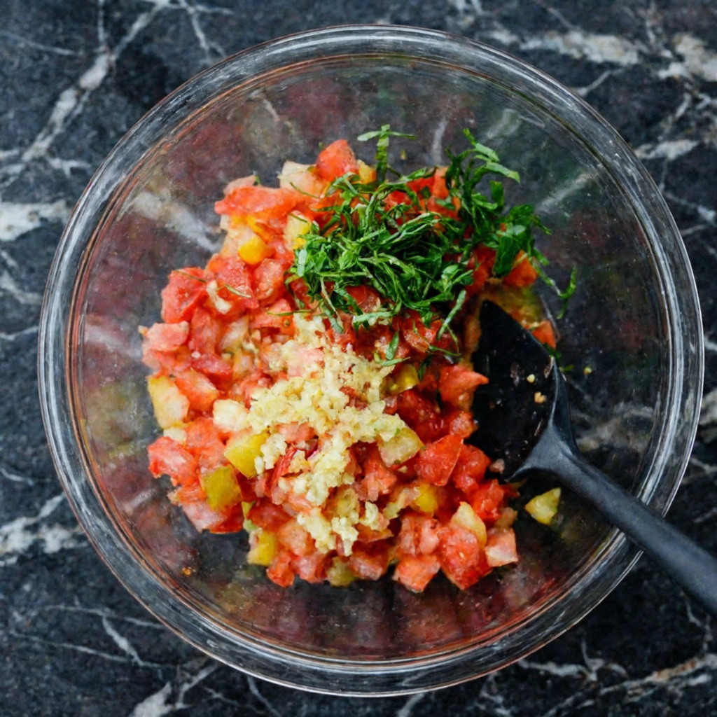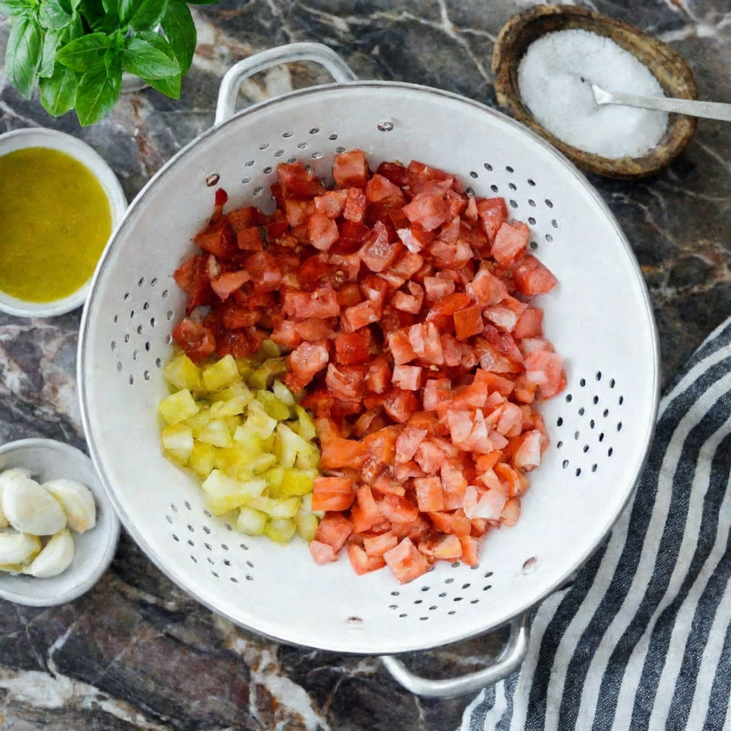 Allow the tomato mixture to sit at room temperature for about 10–15 minutes.