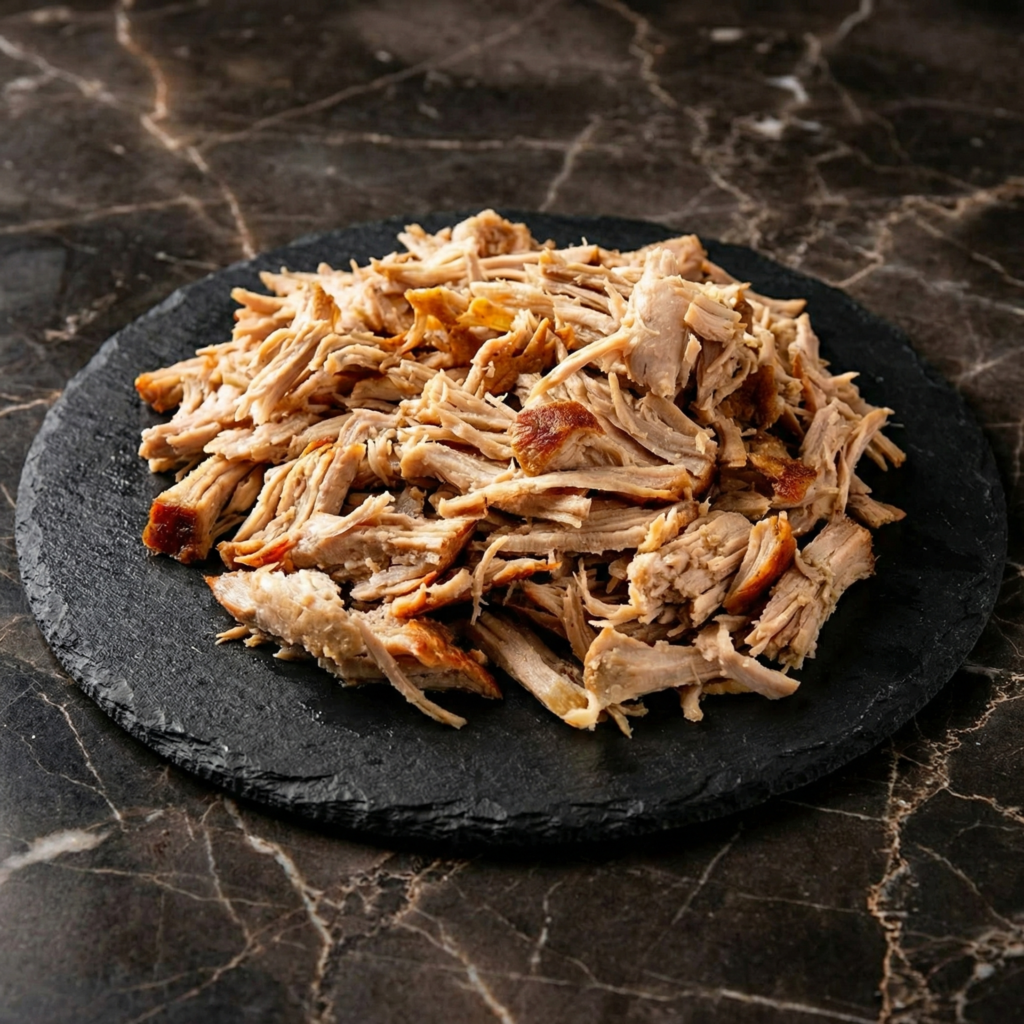 Kalua pork is the soul of Hawaiian cuisine. Traditionally, it’s made by roasting a whole pig in an underground oven called an imu—a pit filled with hot rocks and covered with banana leaves, where the pork cooks for hours until it’s fall-apart tender and infused with smoky flavor. It’s the centerpiece of luau feasts, the taste of celebration, the taste of the islands.