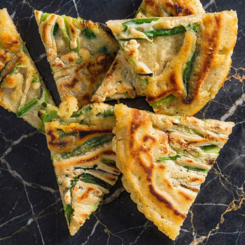 Pajeon is Korea’s answer to the pancake question—and it’s not sweet. It’s savory, crispy, packed with fresh scallions, and served with a tangy soy dipping sauce that makes every bite sing. It’s the kind of food that brings people to the table, perfect for sharing, and dangerously easy to eat.